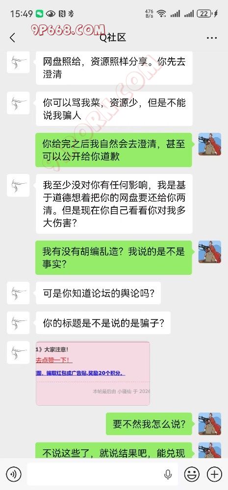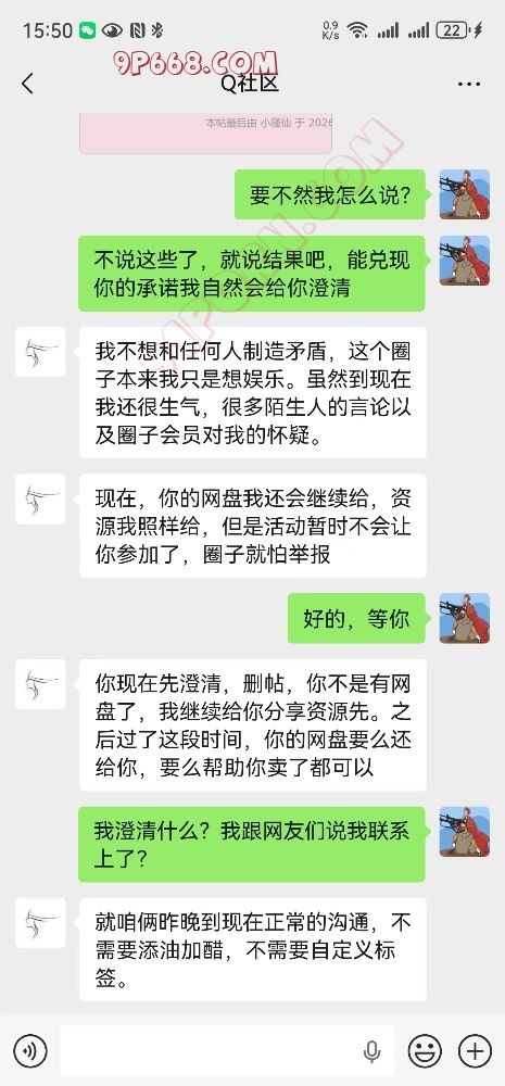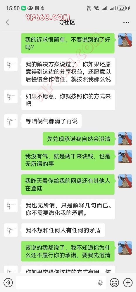 我的诉求是你把承诺给我的东西给我,我自然会上论坛删帖,发帖澄清,甚至可以道歉,是我断章取义了,是我唐突了、冲动了。