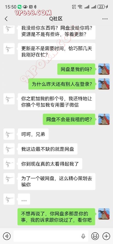二、我1400“买”了他一个115网盘。(官方售价800元8年,他给我的也是8年),他说所有的活动资料都在网盘里,然而并没有,他说会给我上传,为什么没有上传所以我才联系的他。然后失联,并且我没有权利改密码,在新设备登录都需要找他收验证码。
